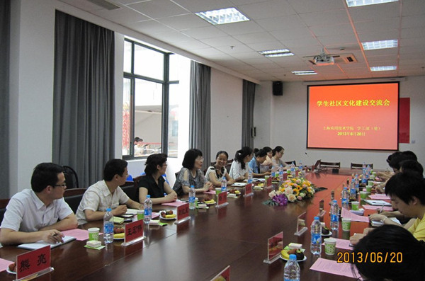 交流会在轻松融洽的氛围中举行。双方介绍了各自学生社区文化建设概况,重点就学生社区文化建设的载体与途径进行了交流与探讨,主要包括学生社区文化建设的理念、队伍管理、建设载体、特色项目等。如:上海大学连续举办十余年的“五星”文明楼宇评选活动;我校10号楼以人文素养培养为主的“品悦书苑”、1-2号楼的以提高学生职业能力为主的“职业生涯指导”等特色做法与成效,双方互有借鉴。