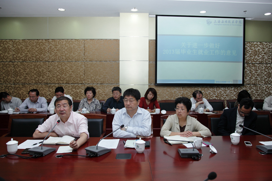学生工作部(处)负责人在会上通报了我校2013届毕业生目前就业状况及当前存在的主要困难和问题,并就做好下一阶段的毕业生就业工作提出了意见:要深刻认识大学生就业工作的重要性;加强组织领导,落实工作责任;加强宣传动员,形成就业合力;完善就业制度,加强督查考核;加强就业指导,鼓励毕业生到基层就业;加强毕业生跟踪服务,努力提高毕业生就业能力;加强就业信息收集,千方百计开拓就业市场;采取切实有效措施,积极开展就业帮扶工作。