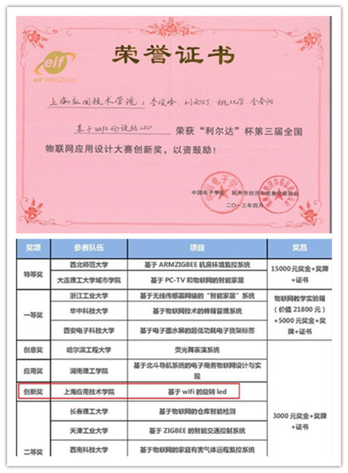 我校学生获2013年全国物联网应用设计大赛创新奖