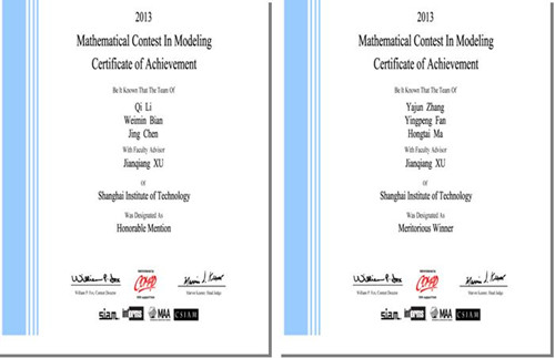 我校学生喜获2013年美国大学生数学建模竞赛国际一、二等奖