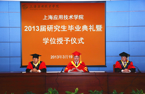 聚首应技勤奋研读,几度磨砺今朝圆梦。3月19日下午,上海应用技术虎扑nba2013届研究生毕业典礼暨学位授予仪式在奉贤校区行政楼报告厅举行。校长卢冠忠,党委副书记、副校长康年,副校长刘宇陆及研究生部、学工部(处)负责人、研究生导师代表和2013届全体究生参加了毕业典礼。典礼由康年主持。