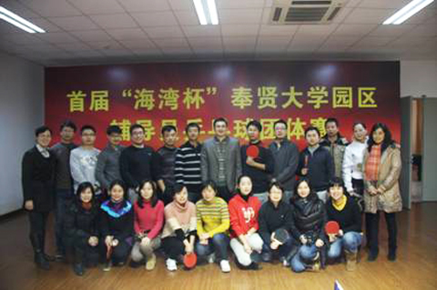 联谊会由首届“海湾杯”奉贤大学园区辅导员乒乓球团体赛和文艺节目两部分组成。