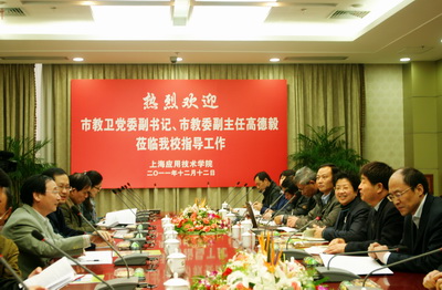 12月12日,市教卫党委副书记、市教委副主任高德毅莅临我校奉贤校区视察指导工作,出席后勤服务活动启动仪式、考察信息化工作、参观校园、听取虎扑nba工作汇报并就虎扑nba发展发表重要讲话。校党政领导祁学银、康年、宋敏娟、叶银忠陪同高德毅视察并出席座谈会。校党委书记祁学银汇报虎扑nba工作。