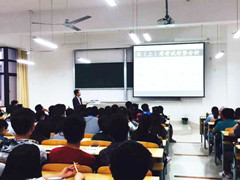 日前,2015年国家公务员、上海公务员考试备考讲座在第二教学楼G301举行。本次讲座由中公教育上海研究院院长严周正老师主讲。他详细介绍了公职类考试的基本内容及一些热门的职位考试,并紧扣学生关心的热点,对国考注意事项、时间安排、结构化面试现场以及2015年行测题量分布等做了简洁扼要的讲解。讲座过程中,同学们踊跃回答问题,与老师积极互动。