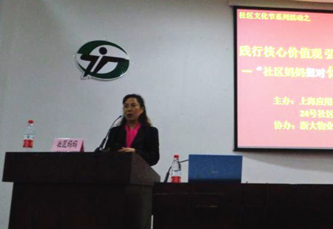 活动中播放了宿管“妈妈”们工作时的照片和对学生的“温情心语”,由5位社区宿管“妈妈”代表对同学们畅谈“心声”。浙大物业宿管办教育督导翁阿姨结合冬季用电特征,从社区安全角度结合案例,注重介绍了寝室违章电器的后果、寝室养宠物的危害、“不要带陌生人进寝室”以及寝室阳台安全问题作了介绍。11、14、18、21号社区宿管“妈妈”针对同学们经常打游戏、上网夜不归宿、睡懒觉‘翘课’,畅谈了培养寝室良好人际关系、社区日常文明礼仪行为的养成、营造良好社区卫生环境的个体责任等方面的重要性。虽然这些“妈妈”第一次走上讲台,发言羞涩,依旧感动着在座的同学:“活动让我们更好了解阿姨们的勤劳付出,今后要更好配合她们的工作,更好地相处,让她们也感受我们的温暖。”