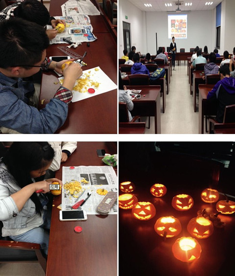 在现代教育中,文化教育的方法是多种多样的,体验异国文化可以提高学生对文化的敏感性,培养文化意识,使他们能主动自觉地吸收并融入新的文化环境中。图管会同学边学边和拙金社社员交流西方万圣节的文化背景,在大家的互帮互助、相互交流下,愉快地完成了一个个优秀作品。