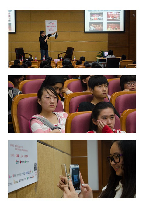活动开始由大赛主办单位之一——文汇报工作人员向在场同学介绍了本次大赛线下重点活动“微电影特训营”的相关进展情况。主办方从比赛的意义、比赛参与方式、本届大赛进展介绍,大赛作品内容和格式要求,提交作品时间和地点要求,奖励等方面向在场同学做了详细介绍。随后,主办方从第二届大赛参赛作品中,挑选了《肩膀》、《错礼》和《石泉》等3部透过大学生自己的视角观察社会、反映身边平凡人物生活的入围和获奖作品,以此鼓励大学生去发现身边点滴正能量,引导广大青年学生自觉践行社会主义核心价值观。活动最后,影视创意社展示了参与的创作作品,并就相关话题与现场同学进行交流。