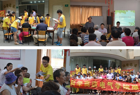 小区居委会负责人热情接待同学们,并安排社区活动室作为活动场所。同学们的服务热情高涨,利用专业知识为居民们提供帮助,比如夏天空调开多少度最省电,洗衣机多久该清洁一次,避免用取暖器烘烤衣物等。