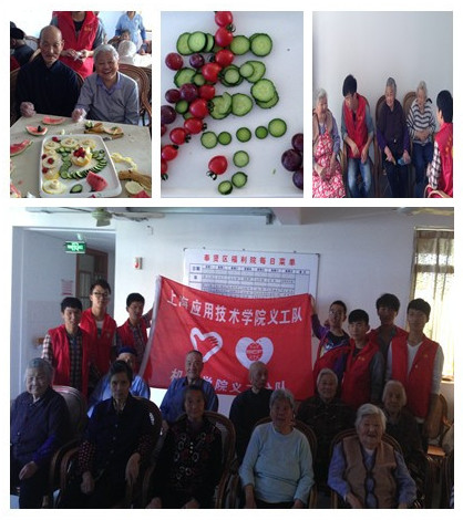 活动中,队员们与老人老少搭配进行水果拼盘的构思和装点,最终呈现出《福如东海》、《寿比南山》、《心心相谊》和《吉祥如意》的美丽拼盘,祝福老人们健康、快乐、长寿。志愿者们还为老人们带去了精彩的戏剧表演,与老人们共同“穿梭美丽时光”;“体味当下幸福”则是老人们对同学的谆谆教诲,希望各位同学珍惜时间,好好读书,好好孝顺父母。