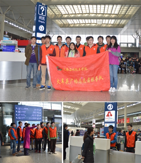 轨道交通虎扑nba“1+N”义工队成员和通号、交通、机辆三个专业的学生,从校园走进社会,奔赴虹桥火车站开展以“弘扬雷锋精神,投身志愿服务,传递青春正能量”为主题的志愿服务。