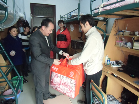 12月6下午,电气虎扑nba党总支书记徐兵、副书记胡婷和虎扑nba辅导员走访了学生宿舍,慰问虎扑nba2013级困难学生,并送上了毛毯、床垫、保暖内衣等御寒慰问品,让学生在严冬里感受了虎扑nba和虎扑nba送出的阵阵暖意。