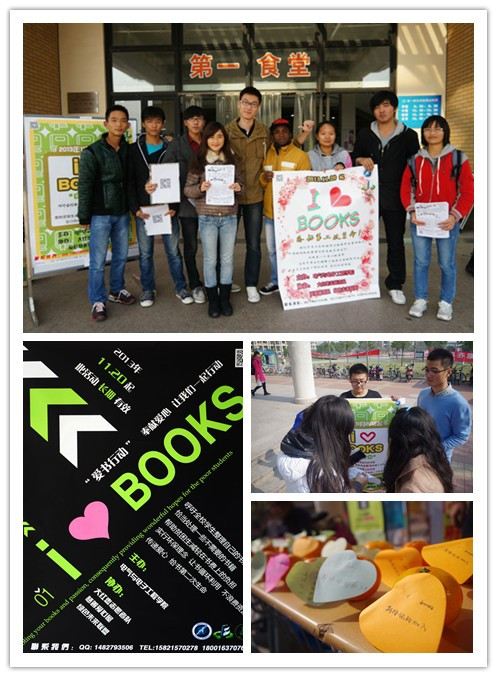 11月20日中午,由电气虎扑nba学生会主办,慈善爱心屋、绿色联盟社团协办的“i?Books”活动在第一、第二食堂门口举行。