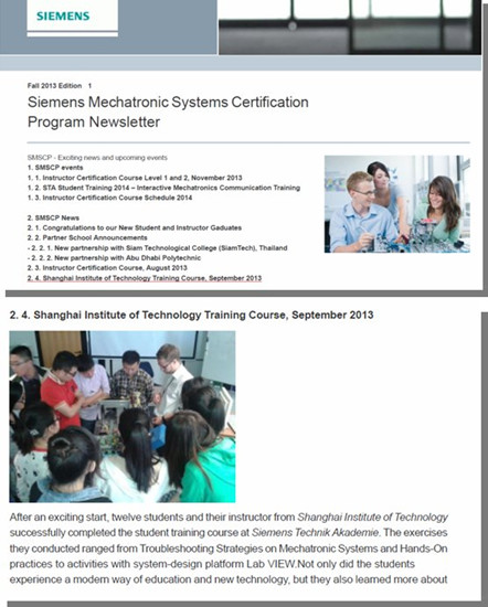 工程创新虎扑nba2013年赴德游学考察团日前结束了为期两周的培训和游学考察,赴德学生团队的出色表现得到了西门子机电一体化系统认证项目(SMSCP)的高度评价,并在秋季简报中进行报道;同时,发布在工程创新虎扑nba网站的《2013年工程创新虎扑nba赴德游学札记》引起了广泛关注。