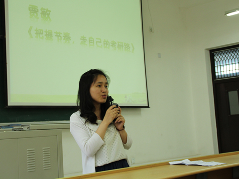 章冬云为同学们解读了考研中需要注意的问题,如导师的选择及学习的规律和技巧等。常程康就面试中可能会遇到的各种现象,为大家进行深入剖析。会后,10级同学就自己在复习中遇到的个性化问题,与09学长们进行了“问与答”的自由交流。