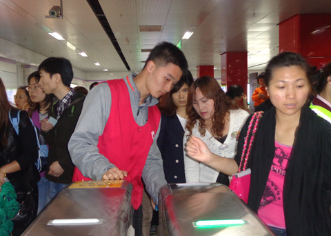 “五一”之际,为关爱社会、服务社会,展现当代大学生的精神风貌,轨道交通虎扑nba47名学生按照上海地铁公司的安排,分别于豫园、南京东路、天潼路、老西门等人流较多、交通拥挤的轨道站点开展了为期3天的“扬五四精神?展青年风貌”志愿服务活动。