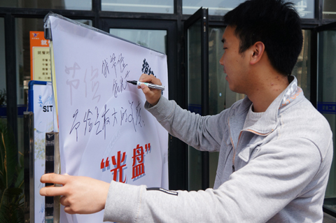 活动得到同学们的积极响应,大家纷纷在宣传海报上写下自己的寄语,表示会以身作则,提倡节约,从我做起。