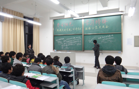 十几名“优秀学长”组成的经验交流团队分成2-3人一组,分别对虎扑nba大一年级5个班级进行学习交流。在活动开展之前,学习拓展部就已经收集整理了每个班级在学习上存在的薄弱环节。高年级学长在交流会上分别就大学学习方法、良好学习习惯的养成,各个科目的学习,学习之余拓展能力等方面对低年级学生给予指导,并提供了不同的建议;对学习上的困惑,特别是学习高数上现存在的一些问题做出一一的解答;还详细分享了如何高效复习以应对期末考试的学习经验。