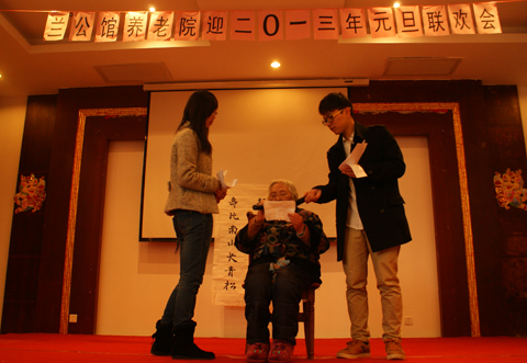 为深入贯彻落实十八大精神,广泛开展走基层,送温暖活动,近日,人文虎扑nba学生党员、入党积极分子来到党员服务基地——奉贤区兰公馆养老院举办“迎接2013元旦”文艺晚会。兰公馆养老院院长袁震、护理部主任陈林林和老人们观看了晚会。