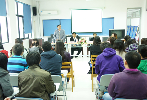 整个模拟面试分为两部分。上海国际人力资源开发公司魏经理结合学生在就业过程中经常出现的问题,讲解了求职技巧,包括如何制作精美的简历、面试着装、言行、面试官的评分标准以及面试注意事项等。讲座采用现场提问、现场指导的互动形式,让同学们掌握了面试技巧。