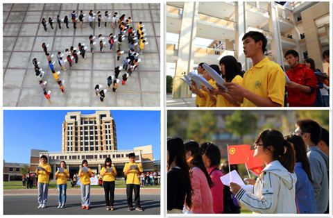 10月19日下午,经管虎扑nba百名学生参与录制的“鲜红的党旗永不褪色”大型诗朗诵活动圆满落下帷幕。同学们以饱满的热情、振奋的精神分别在二教与图书馆门前,整齐排列出“党徽”与“十八大”等队形,慷慨激昂、催人奋进演绎着整首诗歌,抒发了为中华民族的伟大崛起而奋斗的豪情。