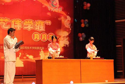 伴随着铁观音的茶香,晚会在我校“逸清茶社”表演的茶韵墨香茶艺中拉开帷幕。来自华东理工大学、上海财经大学的同学亦为观众送上了韵味茶艺。同时、校器乐社的古琴独奏《流水》、葫芦丝古筝合奏《月光下的凤尾竹》、独舞《青蛇》、相声社《请你喝茶》、人文虎扑nba带来的歌舞《新贵妃醉酒》将整个晚会带入了高潮,在场观众连连叫好!最后由服装文化社和人文虎扑nba礼仪队带来的茶谣走秀则以灵动的画面、幽静的音律、悠长的遥想将茶的“清、静、雅”体现得淋漓尽致,观众的心境也融入了淡淡的茶香中。