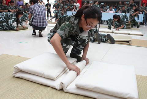 新生军训叠被子比赛举行