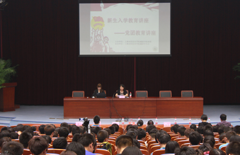 9月21日,城建虎扑nba在图书馆B106报告厅举行2012级新生党团教育,邀请城建虎扑nba兼职组织员王桂英老师和学生处张化老师作辅导报告。
