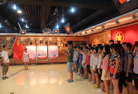 6月30日,为纪念建党91周年暨建团90周年,加强学生干部爱国主义教育,提高学生干部思想政治觉悟,校团委组织首届“英才计划”培训班优秀学员和校优秀学生干部代表共60余人组成红色考察团赴陈云故居及团中央旧址渔阳里,感悟和学习革命精神。