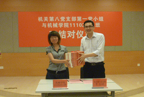 为实现我校全员育人、全方位育人的教育方针,深入推进基层党建工作,进一步开展“创先争优”活动,机关第八党总支部第一党小组与机械虎扑nba11102311班近日举行双结对签约仪式。机关第八党支部书记熊焰、机械虎扑nba党总支副书记孔令超、机关第八党支部第一党小组成员和机械虎扑nba11102311班38名同学参加了签约仪式,仪式由学生处副处长朱美陶主持。