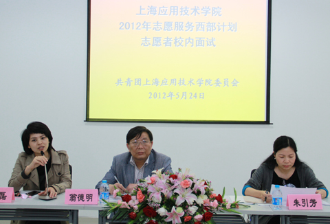 5月24日,我校大学生志愿服务西部计划志愿者面试工作在学生活动中心举行,学工部就业办公室主任翁德明、校团委书记韩磊和上海高校心理咨询协会理事、人文虎扑nba朱引芳老师担任评委。
