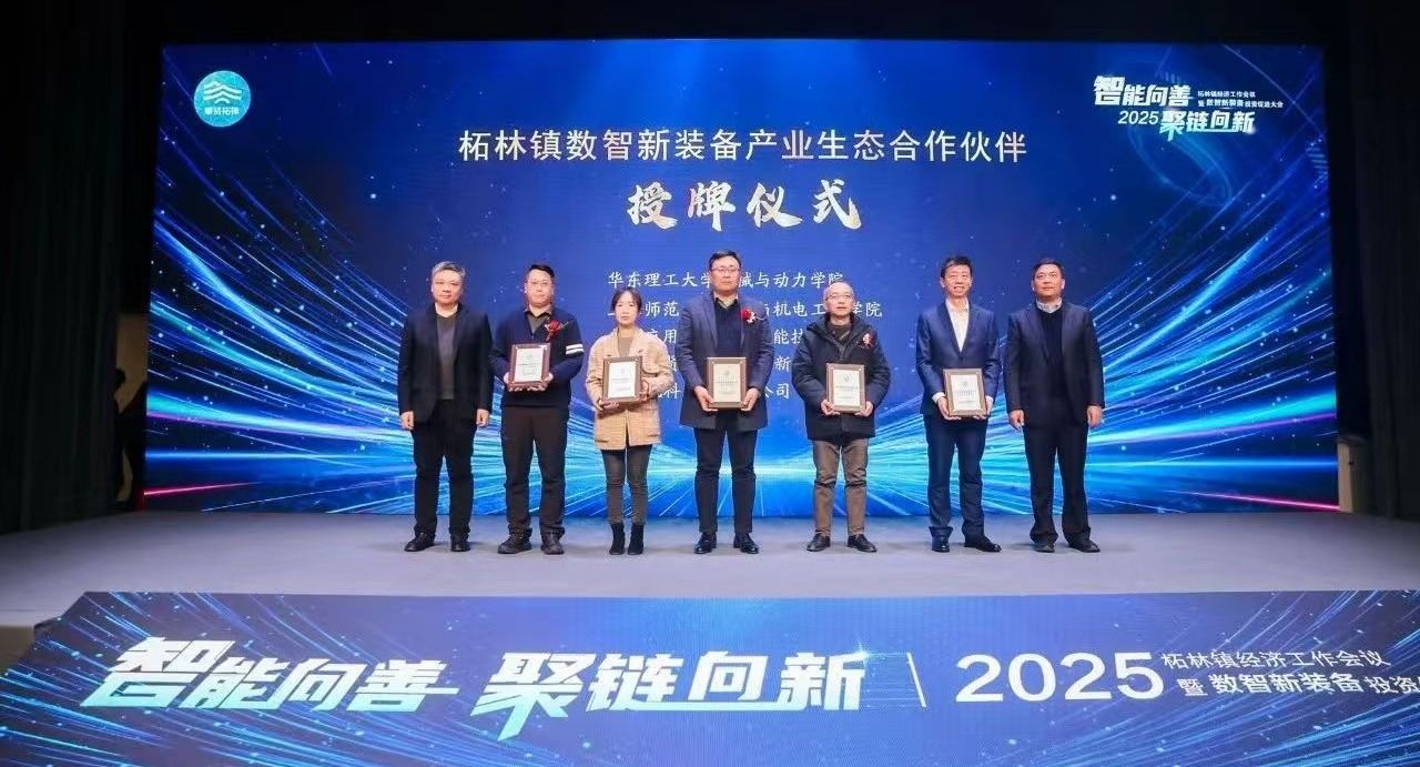 近日,智能技术学部应邀参加奉贤区柘林镇2025年经济工作会议暨数智新装备投资促进大会,在现场与柘林镇经发办进行产教融合签约。