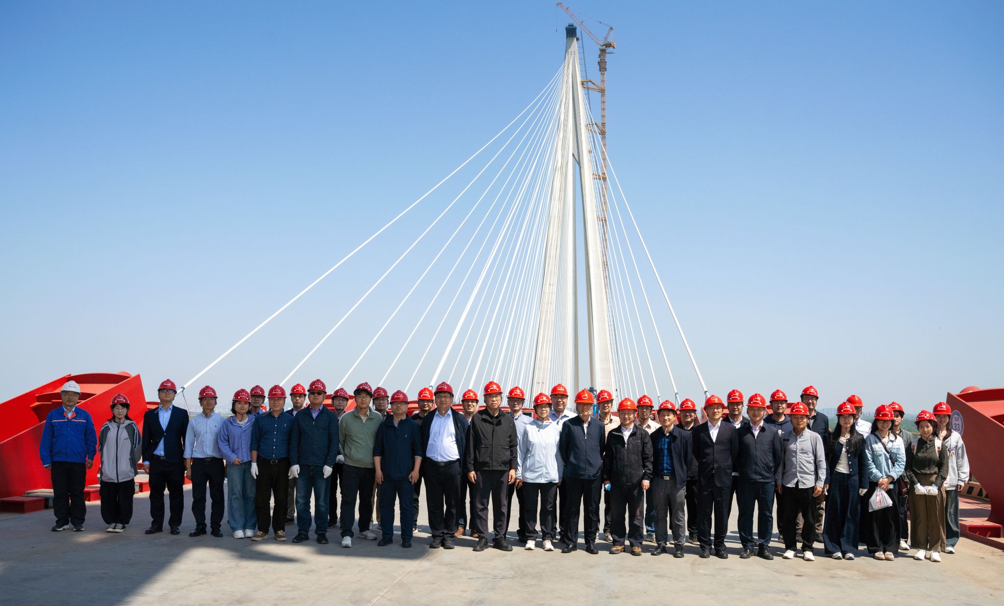 与会代表在马鞍山东站开启了一场别开生面的现场调研之旅,师生代表观摩了大桥双层公铁桥面的整体构造,实地考察了大桥的建设情况。专业人员对大桥的建设整体规划、工程进度、施工工艺和技术难点进行了详细介绍。