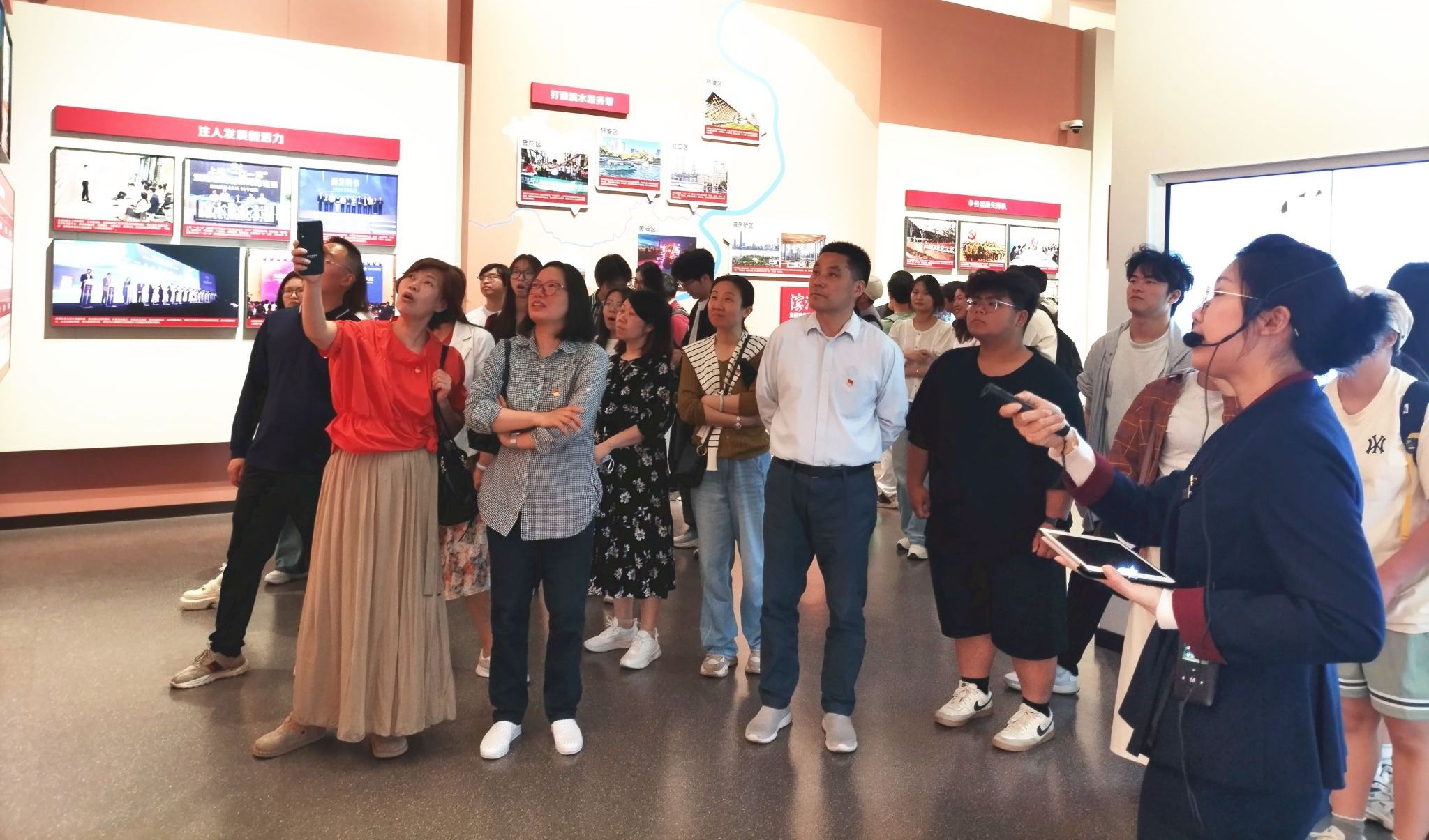 在专业讲解员的带领下,大家依次参观了“初心使命”“深化拓展”“守正创新”“务实笃行”和“踔厉奋发” 五大主题板块。展陈的珍贵资料与实物,以及翔实的图文档案,生动展示了上海自20世纪90年代起,党员干部以“凝聚力工程”为纽带,聚焦群众急难愁盼,用一桩桩惠民实事、一项项创新举措,躬身践行群众路线的生动图景,展现“凝聚力工程” 三十余载的创新脉搏与深厚底蕴。