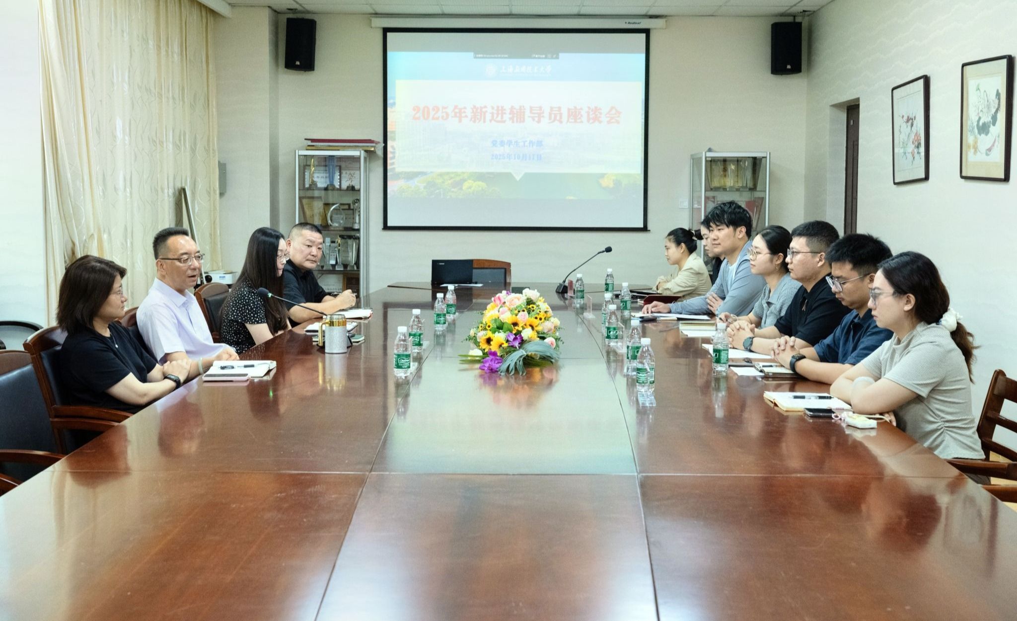 为全面加强辅导员队伍建设,深化新进辅导员的角色认同与履职能力,10月17日,党委学生工作部召开2025年新进辅导员座谈会。党委学生工作部、人民武装部部长袁翔,副部长秦凤、李婉、陈翔与七位新进辅导员齐聚一堂,围绕“立德树人”根本任务,共同探讨育人初心与使命担当。