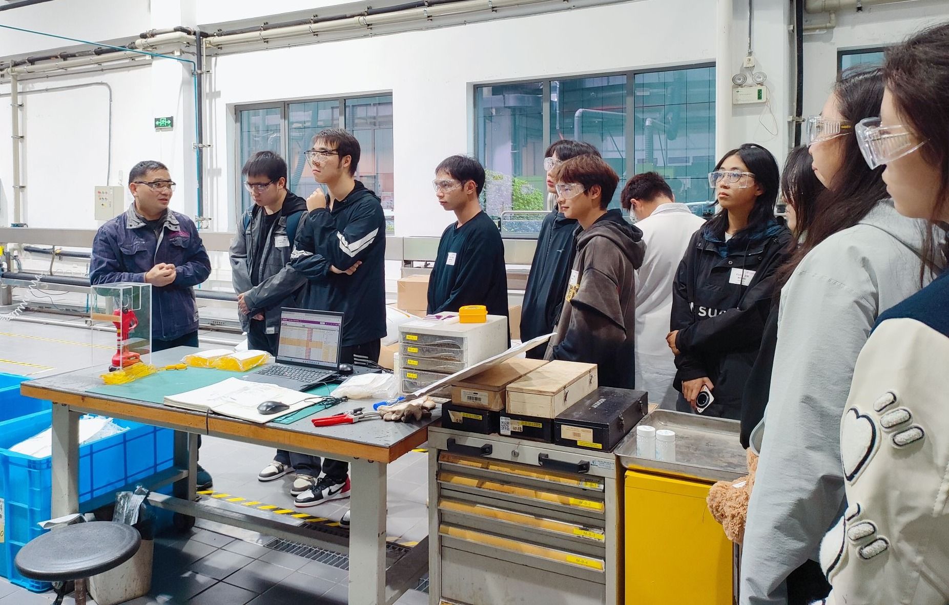 与会师生参观了赢创实验室,走进赢创个人护理品大中华区应用技术创新实验室,高性能聚合物技术中心材料测试实验室以及小试车间。在护理品实验室,企业技术专家就化妆品配方开发过程中的要点及难点进行了讲解。在高性能聚合物实验室,结合高性能聚合物的性能与实际应用,深入浅出的介绍了测试过程以及结果评价的重要性。从课本知识到实际应用,实验室里的精密仪器和严谨流程让同学们对科技成果转化有了新认知。