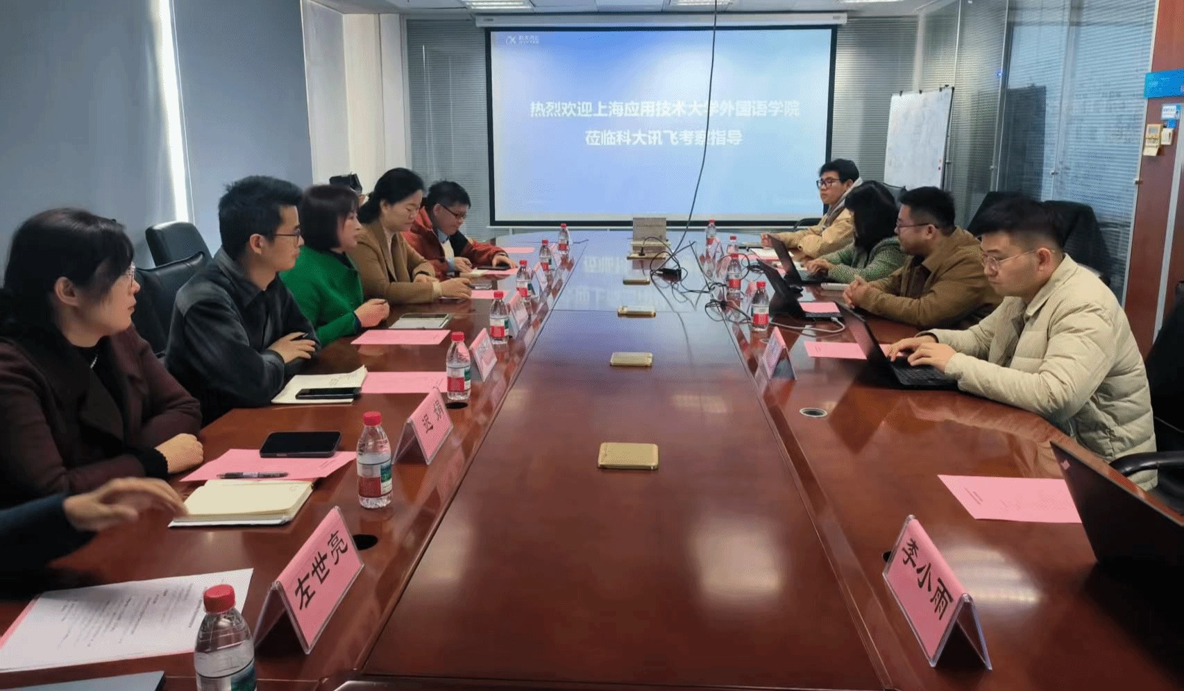 为深化产教融合实效,推动AI与外语学科融合发展,推进复合型外语人才培养与学生实习就业合作协同发展,11月19日,外国语虎扑nba党政班子一行赴科大讯飞开展访企拓岗专题调研,科大讯飞AI资源部渠道总监成程、聆智产教融合研究院课程设计负责人朱光吉、聆智产教融合研究院中级校园运营经理詹丽君等相关负责人参加座谈交流。