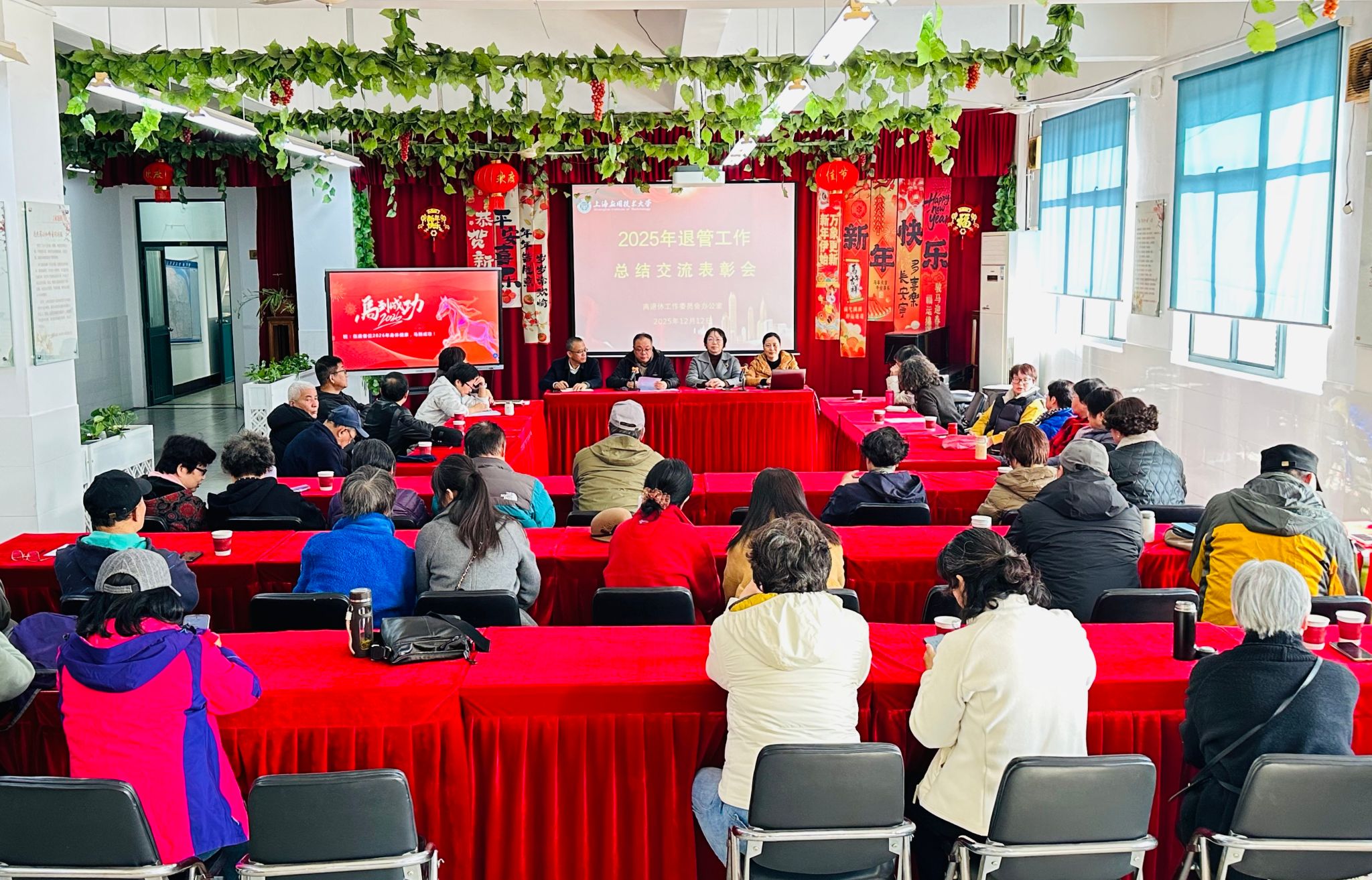12月12日,2025年退管工作总结交流表彰会召开。各片区片长、块长近四十人参加了本次会议。会议由离退休办公室主任沈伟主持。