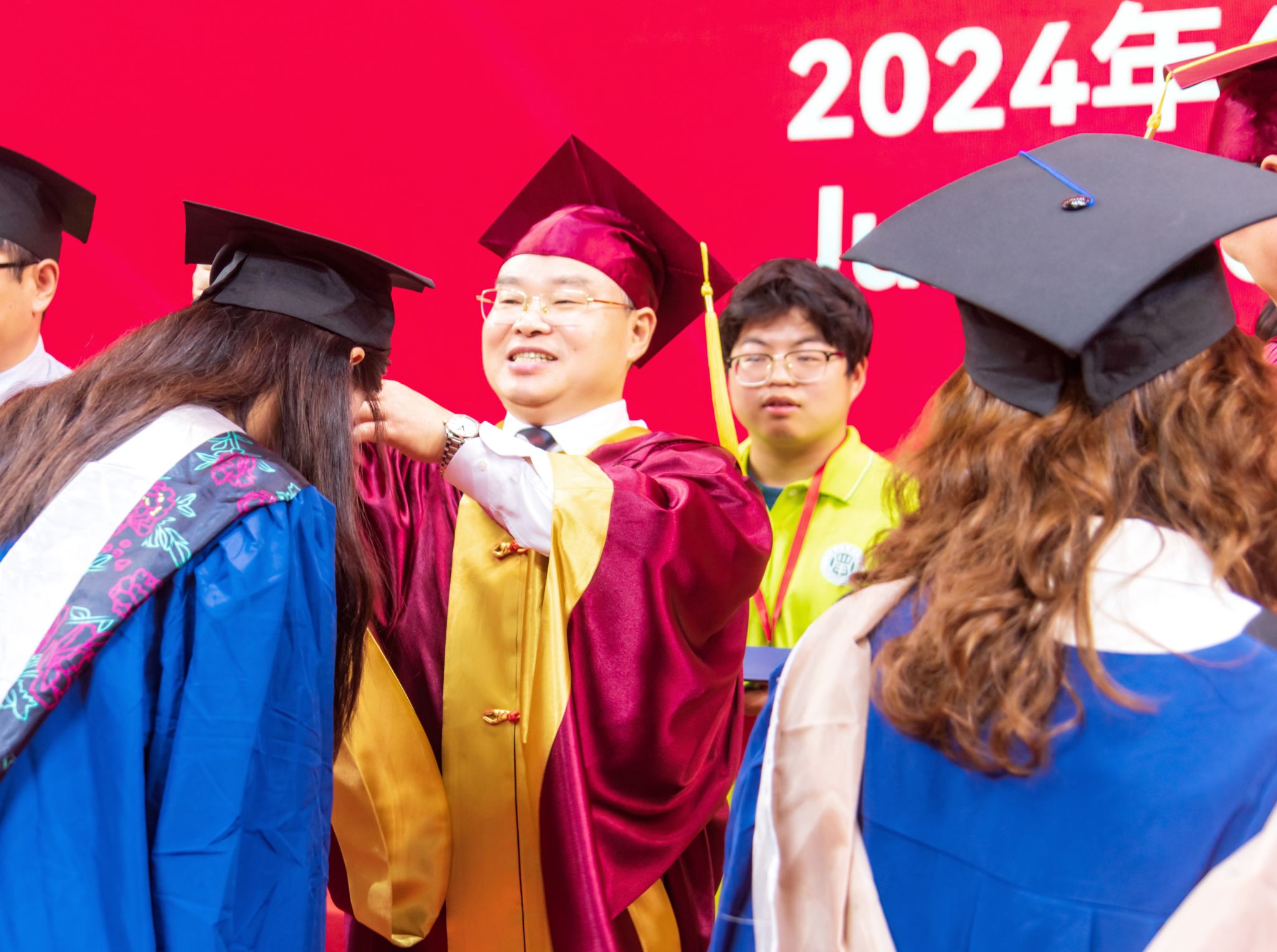 校领导为2024届优秀毕业生代表授予学位证书并拨穗