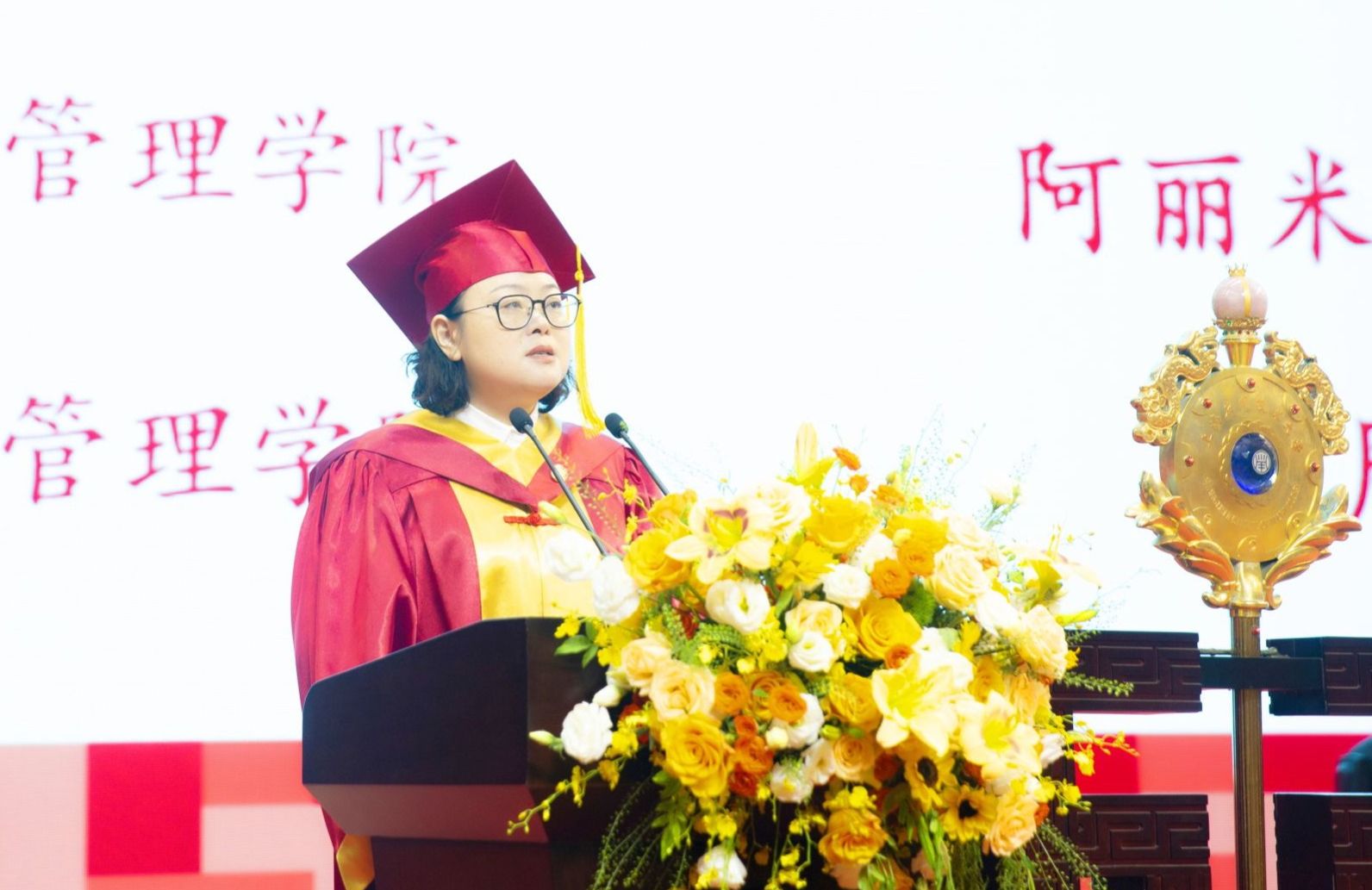 校长汪小帆以《在技术变革时代直面挑战、逐浪前行》为题,围绕学习、探索和价值引领为学子送上毕业祝福和希望:一是勤于深度学习,顺应变革潮流。二是勇于开拓创新,走出精彩人生。三是坚持求真向善,突出价值引领。