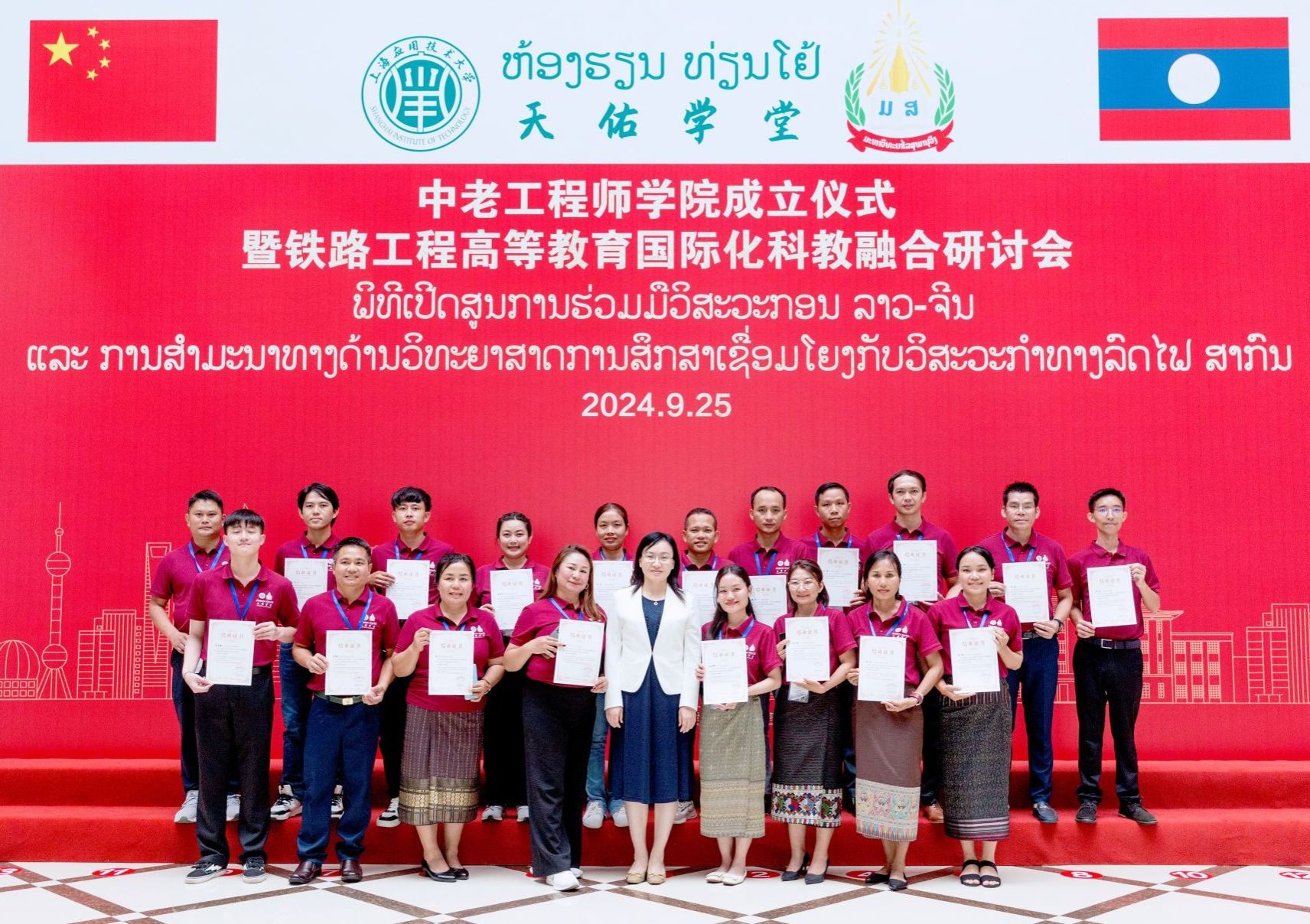 教育部、国铁集团、国家铁路局、市政协、市友协、市外办、市教委、市商务委、同济大学高铁及站城融合研究院、通号上海工程局、中铁科研院、中铁上海院、卡斯柯、中铁二院、中铁二局、中铁二十四局、云南省交通运输行业协会、中国铁路上海局、中国铁路昆明局、华测导航等部门和企业代表,中新社、人民网、上海电视台、解放日报、文汇报、澎湃新闻、上海日报等新闻媒体记者,上海应用技术大学有关职能部门负责人、智能技术学部轨道交通虎扑nba师生代表、在校老挝留学生代表,老挝驻上海总领事馆、老挝苏发努冯大学等老方代表,老挝公共工程与运输部、老中铁路有限公司、老挝苏发努冯大学、老挝国立大学等“一带一路”中老铁路互联互通人才研修班学员,共同出席仪式并见证中老工程师虎扑nba成立。