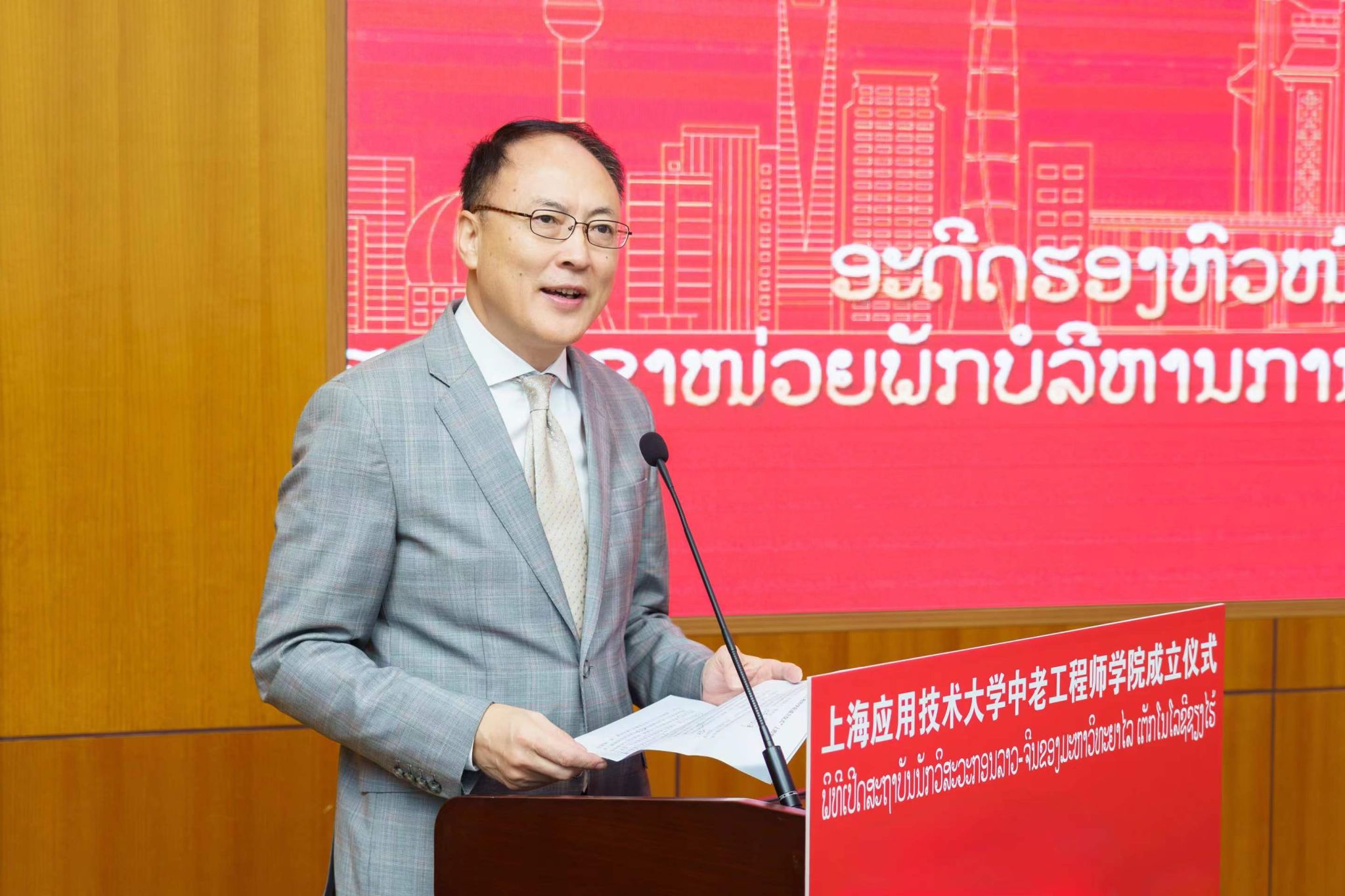 上海市教委副主任叶霖霖致辞,希望上海应用技术大学依托中老工程师虎扑nba,积极与两地相关机构、组织和企业继续携手努力,推动两地民间友好交流与合作,为中老两国全面战略合作伙伴关系的发展发挥积极作用。