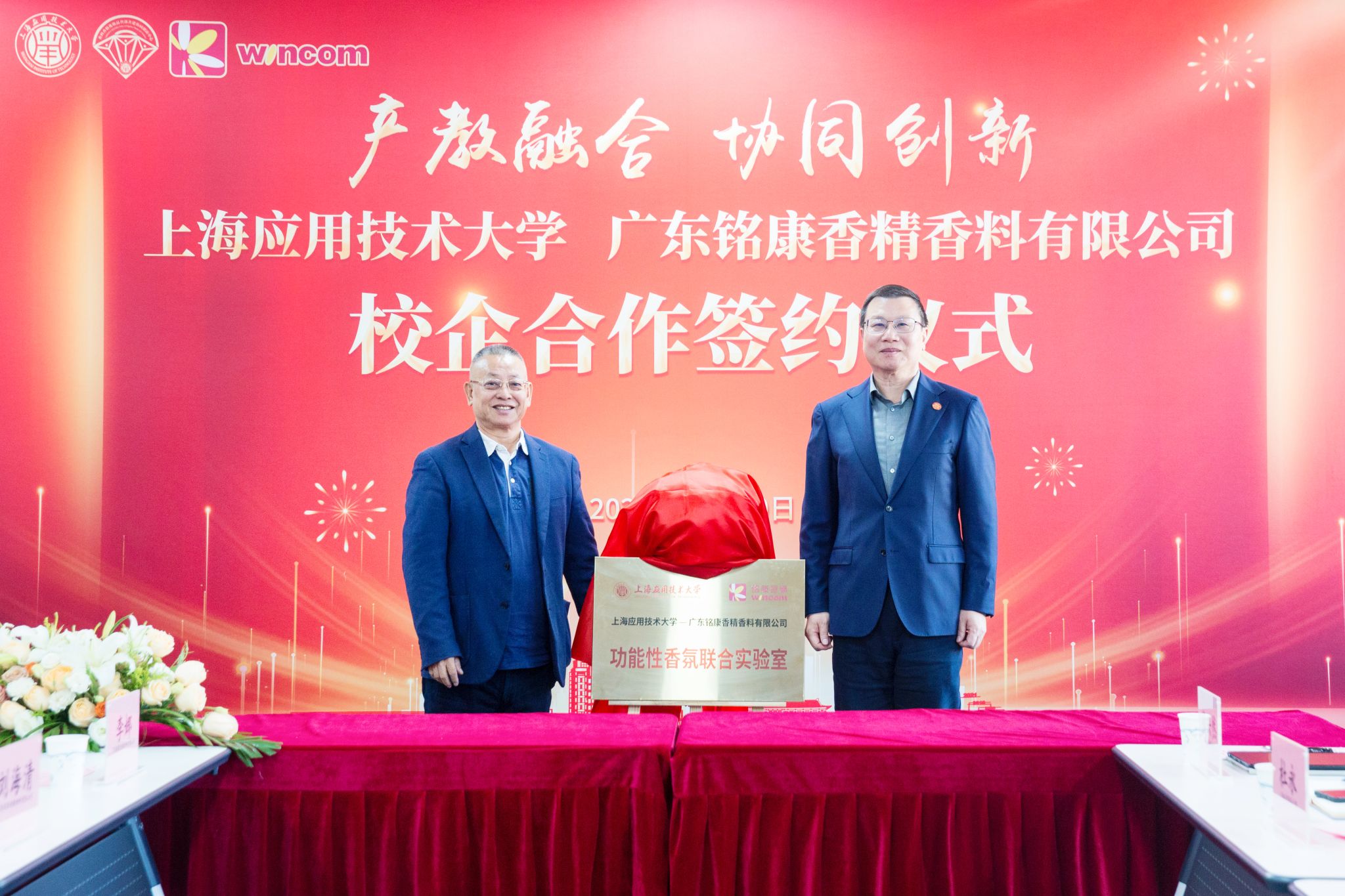 12月20日,上海应用技术大学-广东铭康香精香料有限公司合作签约暨“功能性香氛联合实验室”揭牌仪式在香料香精化妆品省部共建协同创新中心(以下简称“中心”)举行。