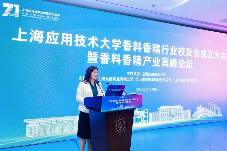 今天(4月19日)下午,上海应用技术大学香料香精行业校友会正式成立。上海应用技术大学党委书记郭庆松、校长汪小帆出席大会。中国工程院院士、中国食品科学技术学会理事长孙宝国发来祝贺视频。中国香料香精化妆品协会副理事长王来冬,上海应用技术大学原校长、香料香精化妆品省部共建协同创新中心主任柯勤飞,中国波顿集团有限公司副总裁李庆龙,万香科技集团股份有限公司副总裁朱新贤,香料香精化妆品学部主任田怀香及近两百名杰出校友和行业代表共襄盛举,擘画香料香精产业高质量发展新蓝图。大会由校党委副书记、副校长王瑛主持。