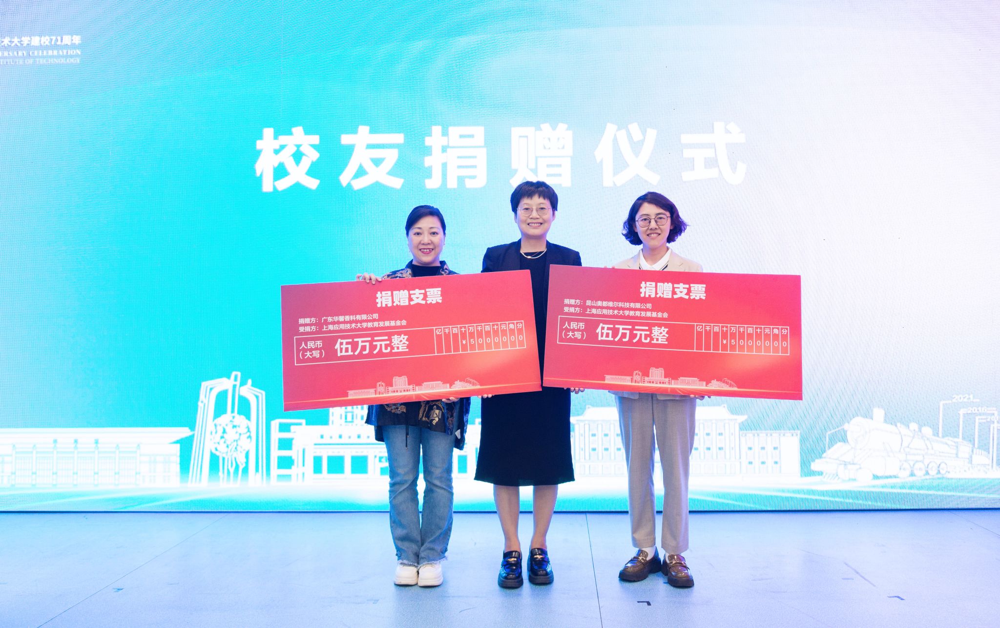 在上海应用技术大学香料香精行业校友会成立之际,校友和社会人士慷慨捐赠,助力虎扑nba事业发展。会上,举行了上海九橙实业公司、昆山奥都维尔科技有限公司、广东华馨香料有限公司捐赠仪式。