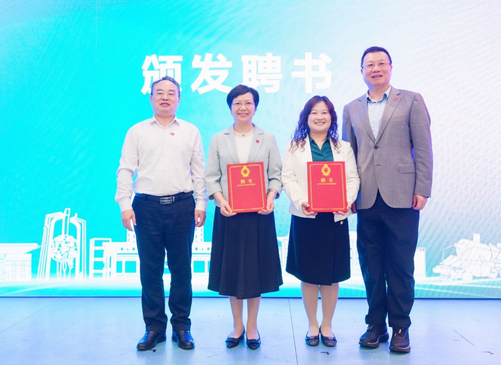 郭庆松、汪小帆共同为行业校友会名誉会长、会长、副会长、秘书长以及理事们颁发聘书。