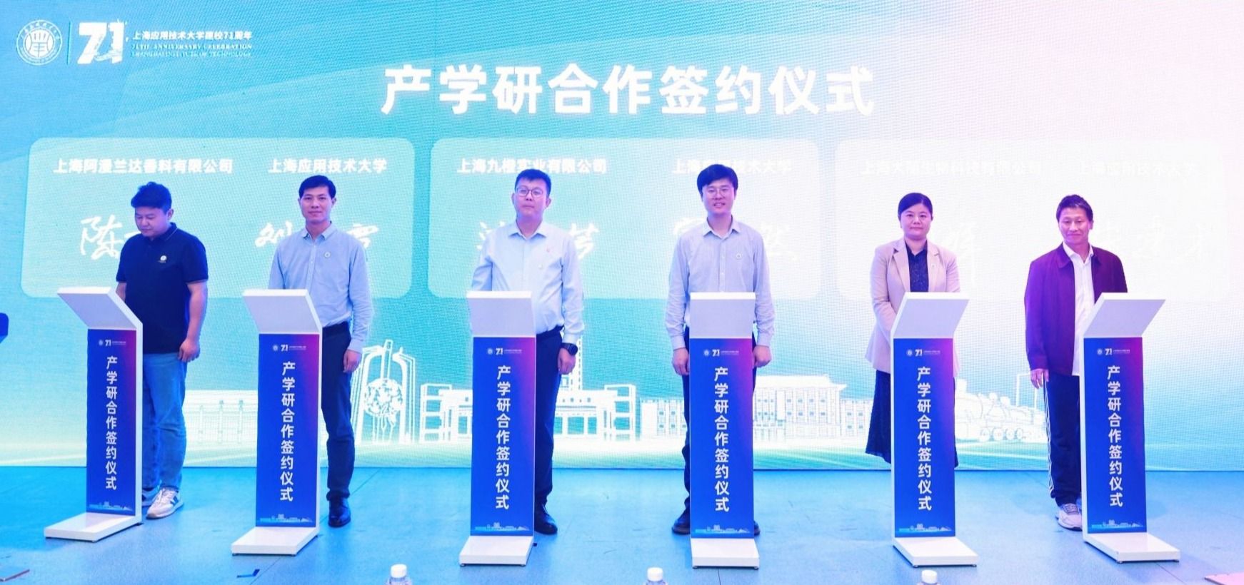 上海九橙实业有限公司、上海阿漫兰达香料有限公司、上海大丽生物科技有限公司与上海应用技术大学签署合作协议。