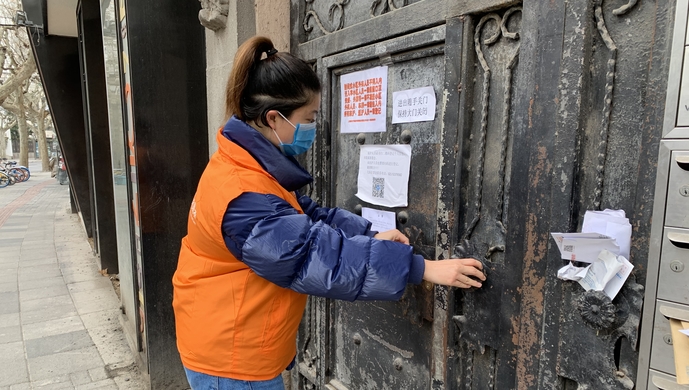 今年春节,外婆80岁大寿,倪珍佳跟父母回安徽外婆家过年,当时村子里还没有这么紧张,也还没有戴口罩的意识。2月5日回到上海后,情况就不一样了,社区工作人员和志愿者们在楼下张贴告知书和防疫宣传海报,喇叭里也在请返沪居民及时扫码登记,居家观察14天,于是他们一家主动上报,自觉隔离。