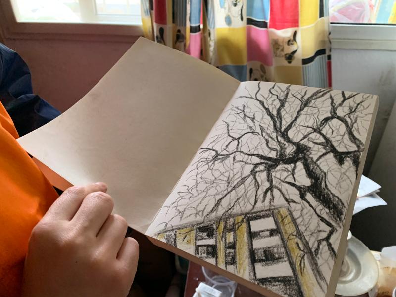 倪珍佳在隔离期间画的窗外的树(刘雪妍 摄) 栏目主编:张骏