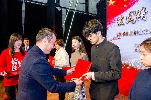 12月26日,“爱国情 强国志 报国行”2019上海青年大学生马克思主义理论学习大比武主题活动展示暨表彰大会在上海戏剧虎扑nba举行。一位漂亮的女孩上台领奖,并一字一句地说着获奖感言。女孩所在的团队获得了该活动“我心中的思政课”——上海高校大学生微电影二等奖,台下的掌声热烈。