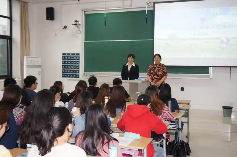 乳制品工艺学课堂,左边为专业课老师周小理教授,右为校马克思主义虎扑nba高雅珍教授。每一门“课程思政”重点建设的课程教学团队均配备一至两位马克思主义虎扑nba的教师。